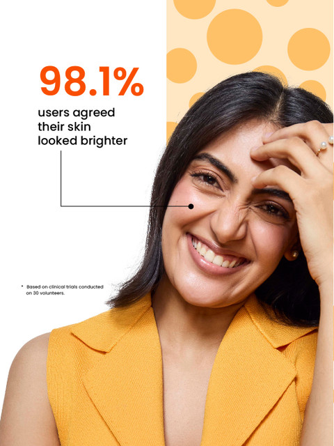 Infused with Vitamin C, known for its brightening and antioxidant properties, which help even out skin tone and enhance natural radiance.